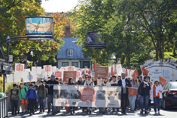 Le 1er octobre, à l’occasion de la Journée internationale des aînés, l’AREQ a pris part à la 5e édition de la marche Agissons ensemble pour le mieux-être des aînés, organisée par la Fondation AGES et l’organisme Un et un font mille (UEUFM), en collaboration avec différents partenaires, dont l’AREQ à titre de présentateur officiel de l’événement. Sous le thème Misons sur nos forces, plus de 2200 personnes se sont mobilisées à Québec, à Montréal et au Témiscamingue pour souligner la contribution inestimable des personnes aînées dans notre société.