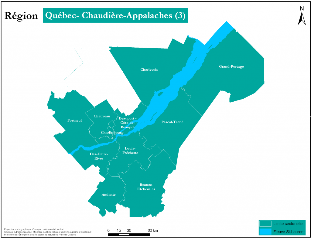 De Portneuf en passant par Québec, la région couvre les deux rives du Saint-Laurent. Sur la rive sud, nous suivons la voie fluviale jusqu’au secteur Grand-Portage. De l’autre côté, nous voyageons par monts et caps en direction de Charlevoix.